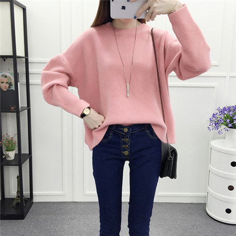 韩版秋装圆领长袖宽松毛衣 秋冬套头时尚针织衫